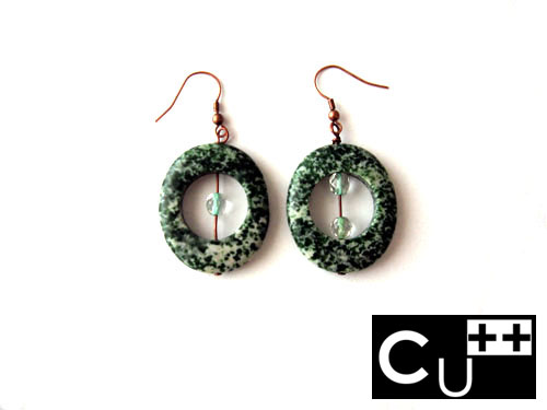 Handmade bracelet with copper enamelled circles, copper spyrals and zinc alloy buttons.